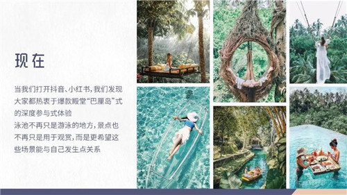 接着,许鑫明继续抛出自己的观点,“打造爆款不能成功,深度定制爆款才能成功”。这更像是一种自我批判。拿国内市场现状来说,无数个“巴厘岛”式的无边泳池、秋千吊床等爆款场景被快速复制,但最后能让消费者记住的寥寥无几。原因就在于,成功的爆款不是简单搬运,而是深度定制。