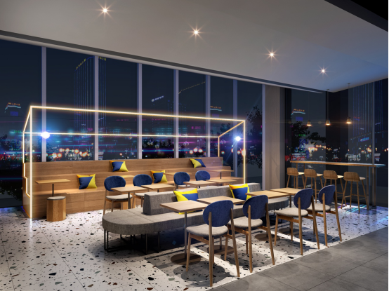 高效办公是品牌实践的另一特色,新7天尤为关注空间的商务办公功能,这也取决于新世代经济型商旅客对商务办公所持有的需求与期待。客房内设置了手机投屏、无线充电、移动端智能客控、多样化灯光场景、红外感应夜灯、多功能办公桌、床头办公装置等等设备,用以随机实现办公的高效性。此外,品牌将共享办公作为公区的主要特色,还有单人办公及小组办公空间可供选择,7天品牌的公区设计为住客提供多种消费场景的灵活选择方案。