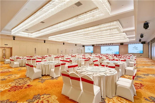 酒店拥有10多个功能宴会厅,其中600平米以上的宴会厅有2个,共可容纳约1100余人同时用餐或会议。