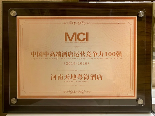 天地•殊荣||荣膺中国MCI酒店运营盛典《中国高端酒店运营竞争力100强》奖项