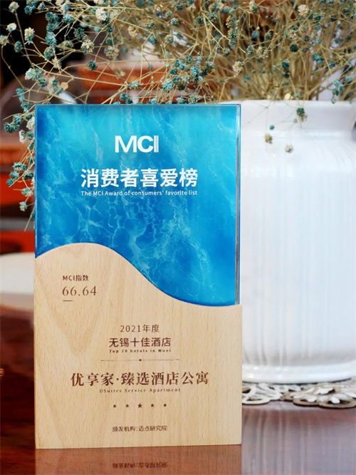 优享家·臻选酒店公寓荣获MBI“2021年度无锡十佳酒店”