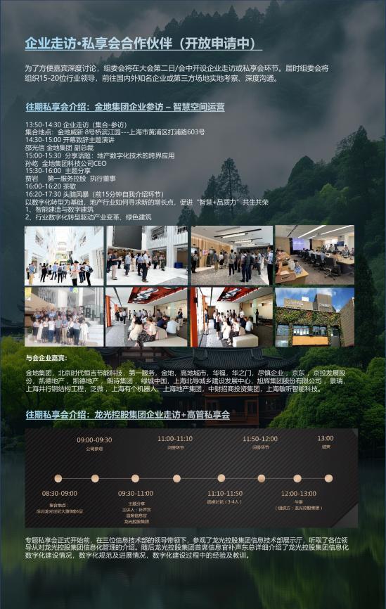 为了方便嘉宾深度讨论,组委会将在大会第二日/会中开设企业走访或私享会环节。届时组委会将组织15-20位行业领导,前往国内外知名企业或第三方场地实地考察、深度沟通。