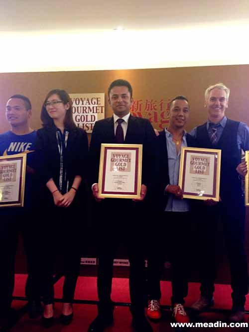 东西风餐厅经理Abraham先生(图中)从主持人梦瑶手中接过殊荣