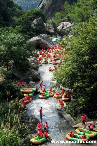 友情提示:漂流前需要做足充分的准备,首选一定要了解自己的身体健康状况,有心脑血管疾病的朋友尤其要谨慎。其次因为是夏天,又是户外活动,要有防晒的准备,最好是穿长袖长裤,但是要求尽量简单、易干,不要太薄或色彩太淡。漂流后湿透的衣服需要更换,以防着凉,所以要携带一套干净的衣服,以备上岸后及时更换。鞋子最好是选择凉鞋或塑料拖鞋,但拖鞋不要太松,要不很可能漂流后只剩一只,切忌穿皮鞋漂流。如果是戴眼镜的游客,最好事先用皮筋或者小红绳系上,不建议戴隐形眼镜,隐形眼镜会增加感染机会。