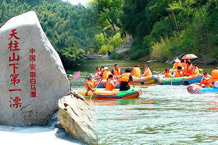 天柱山白马潭漂流位于安徽省潜山县水吼镇境内,是世界地质公园、中国5A风景名胜区天柱山西麓的核心景区。古朴清新的河岸风光与浓郁的大别山风情和谐交融、优雅如歌。全新推出的传统竹筏“逆顺”漂流和现代橡皮艇漂流各有特色。从合肥前往景区自驾车大约2小时车程,当日可返程。