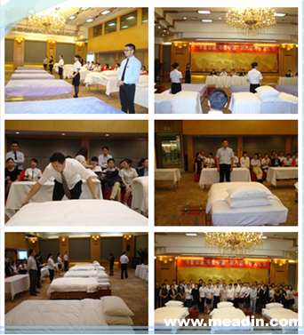 经过一番激烈的角逐最终胥城大厦张晓勇凭借整洁标准的床面、规范到位的操作一举夺得桂冠。书香世家济南店吴友坤和南通店李剑分获二、三名的优异成绩。