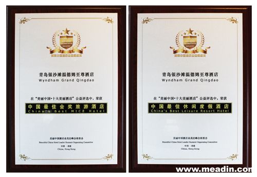 青岛银沙滩温德姆至尊酒店喜获”中国最佳会奖旅游酒店”和”中国最佳休闲度假酒店”两项大奖