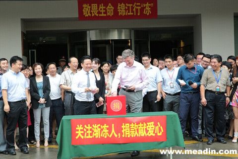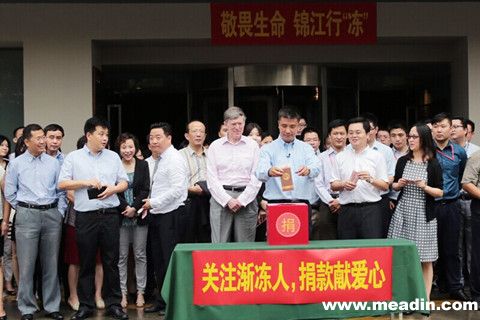 2014年8月29日,一场锦江式的#冰桶挑战#在锦江都城公司总部上演。公司CEO俞萌和旗下四大品牌(锦江都城酒店、锦江之星酒店、金广快捷酒店和百时快捷酒店)代表及100多位总部员工共同参加了“关注渐冻人、捐款献爱心”活动,这是锦江都城公司主动承当企业社会责任、传递正能量的又一善举。