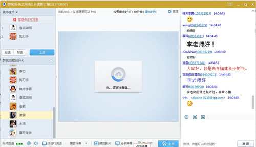 下午1点30分,为确保公开课正式开始之前学员们能正常进入群视频、正常使用音视频,由主持人带领学员们进入课前互动测试环节。在主持人的带领下,学员们纷纷加入,并在群里友好的互相问候。