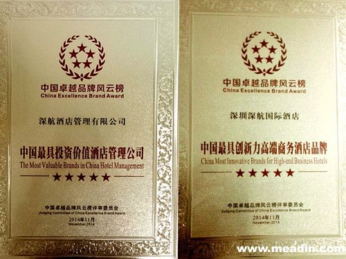 深航酒店管理公司喜获“中国最具投资价值酒店管理公司”奖项并被评为“中国最具创新力高端商务酒店品牌”。