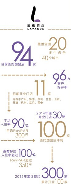 2014年底,麗枫还在持续发力,12月将累计开业30家门店。2015年麗枫的签约目标是300家,开业100家,布局全国一二线城市。