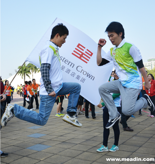东呈酒店集团的愿景是:成为中国精选服务酒店引领者。不过多才多艺的东呈人的目标,可是成为德智体美劳全面发展的好童鞋,成为全方位的引领者哦!12月12日下午的广州奥体中心,东呈酒店集团应邀参加了2014年“城市乐跑赛·广州站”比赛。在集团副总裁黄芝兰女士的带领下,34名东呈人统一着装,闪亮登场,轻松拿下5.2公里的赛程。