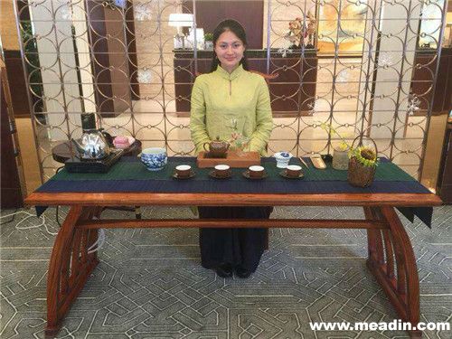 活动中伴随着清幽典雅的古乐,呼吸着沁人心脾的茶香,受主办方邀请的知名茶艺师在活动现场为会员嘉宾奉上一段优雅的茶道表演,她用精湛的茶艺演绎了中国千年传承的茶道精神。悠悠茶香中,让在场的会员嘉宾们领略到了锦江都城酒店所传承的文化魅力。