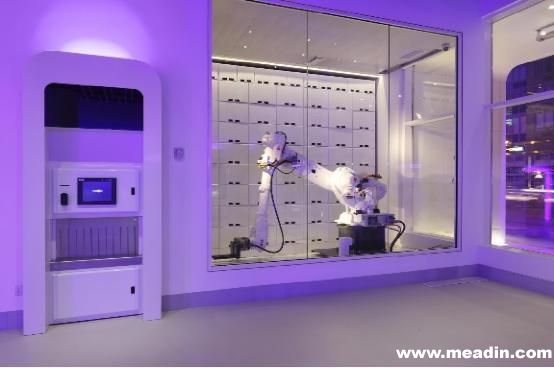 纽约的酒店Yotel使用了机器人礼宾来存放行李,如果客人的房间还不可用,或是在结账时想要找个地方放行李。Yotel的机器人名叫YOBOT,它会在巨大的玻璃面板之后活动,让客人可以一目了然地看到它的动作。需要存放行李时,客人可以通过触控屏来输入行李箱的号码和大小,YOBOT随后就会将其存放起来,并提供一张印有条形码的取包凭证。
