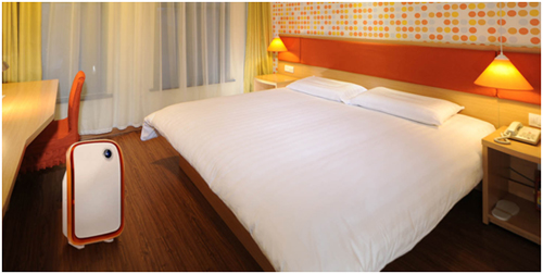 截至2014年12月,如家酒店集团在中国330个城市共有3000家酒店投入运营,截止目前,如家酒店集团旗下已经配套“净馨房”环保房型的如家酒店和莫泰酒店,都引入了国际一线空气净化器品牌——飞利浦,能有效过滤PM2.5,为每一位来宾保证了室内空气质量,创造了健康、环保、洁净的室内环境。