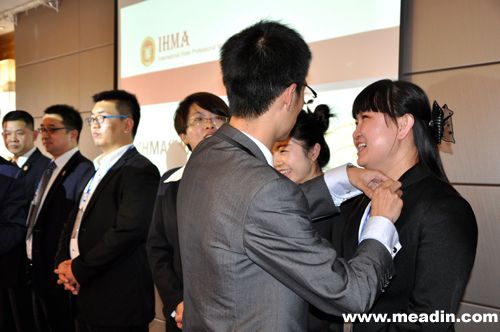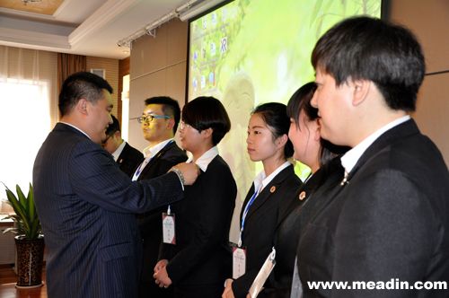 最后,由IHMA华北分会主席徐立波先生、副主席王飞先生为会员佩戴徽章,同时引领全体会员宣誓,会议伴随着2014国际饭店业职业经理人大会的视频圆满结束。