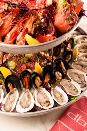 全新db Bistro and Oyster Bar 中,由法国及美国鲜蚝、缅因大龙虾、阿拉斯加帝王蟹、大虾、贻贝、鲜蛤以及鞑靼吞拿鱼等名贵食材製作的海鲜拼盘无疑是当之无愧的大餐。全新功能表中的亮点还有每日精选的干火腿与酸橘汁腌鱼,还有整烤地中海石斑鱼、1公斤板烧缅因大龙虾以及丹尼尔布鲁最拿手的“A la Plancha”章鱼铁板烧,同时还有db闻名全球的塬创db汉堡、油封脆鸭、双人草药有机烤鸡以及家常熟食等经典名菜,新老交匯让人讚不绝口。