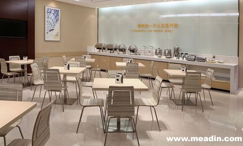 此次城市便捷的自助早餐升级,提供的菜品增加到了19种标准款加2款酒店当地特色美食,不仅种类更丰富,搭配也更考究:既有馒头、米粉、炒饭等家常中式菜,还有西多士、牛角包、吐司等西式餐点;在视觉上也力求赏心悦目:金黄玉米、翠绿菜心、紫薯、西瓜……通过错落有致的搭配激发客人的食欲。除了食物本身,对厨房用具以及供应流程也都进行了升级:布菲台上增加了保温灯和保温板,以保证食物的温度与口感;咖啡和红茶的供应,每次添加都最多倒满咖啡壶的2/3,以保证客人喝到的都是新鲜的饮品。不仅如此,城市便捷的餐厅环境,也较大多数经济型酒店更为宽敞明亮,对布光、用色等也更为讲究。