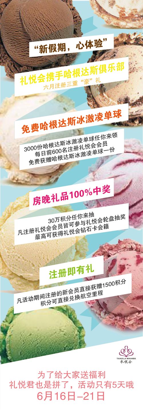 “新假期,心体验”,礼悦会携手哈根达斯俱乐部,六月注册三重“豪”礼!免费哈根达斯冰激凌单球3000份,哈根达斯冰激凌单球任你来领!