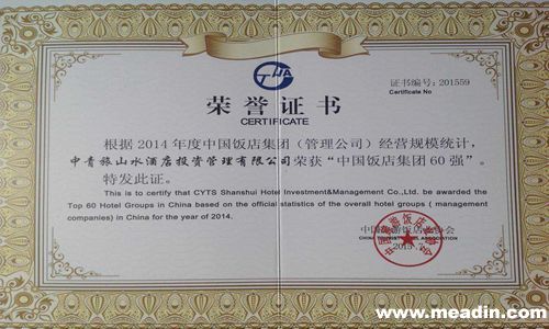 作为国内中档连锁酒店的领导品牌,中青旅山水酒店成功入围并获得了“中国饭店集团60强”荣誉。