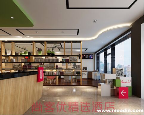 例如,尚客优精选酒店独创的“Multi-S多功能大厅”,其融合了“面吧+自助早餐厅+咖啡厅+U-shop礼品选购区“四大功能区域,有效提高空间利用率,提升了投入产出比。与普通酒店大厅相比,可为酒店增加至少30%的收益。