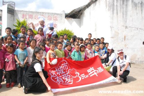 城市之音FM102.6栏目组、爱心大使郁可唯和孔令奇以及西昌邛海湾柏栎度假酒店管理高层探访凉山仁寿村小学。