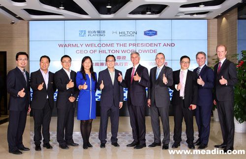 2015年12月1日,希尔顿全球总裁兼首席执行官Chris Nassetta先生、希尔顿全球亚太区总裁Martin Rinck先生,希尔顿全球大中华及蒙古区运营高级副总裁Bruce McKenzie先生,希尔顿全球大中华及蒙古区项目发展高级副总裁李威豪先生以及希尔顿全球大中华南区及北区营运副总裁David Kelly先生等一行对铂涛集团进行了参观访问,并与希尔顿欢朋中国团队进行了非常欢快,融洽的沟通交流。铂涛集团董事,首席财务官吴海兵先生、希尔顿欢朋中国区总裁王伟女士安排了热情的接待。