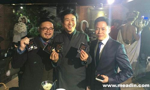 铂涛集团董事长郑南雁与喆啡高管展示喆啡新产品