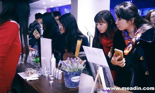 是大片的薰衣草吊顶装饰,以“南法四季”为主题的调香环节,采用五星布草打造“云端之梦”留影区,配备麗枫专属慕思床垫,天然洗护和五星洗浴的“自在+”样板间......这一切,都让到场客人有如临南法之感。