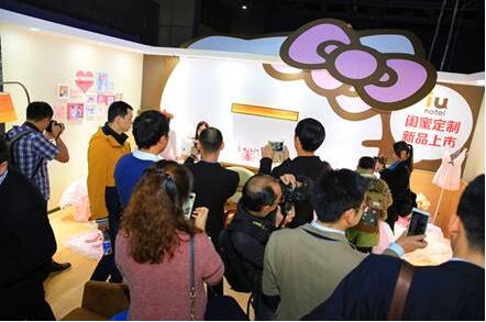 9号当晚,18个品牌各出奇招、争相辉映,其中要数IU酒店以年轻个性的风格及好玩时尚的互动抢足风头。IU酒店的展区1:1还原了客房、大堂休闲区等细节,另外配备了优雅休息区和精美茶点,更把微信互动屏搬至现场,嘉宾可在互动屏中自由晒照片、写感言、结交朋友,让观众十步之内享受吃喝玩乐的不同趣味。