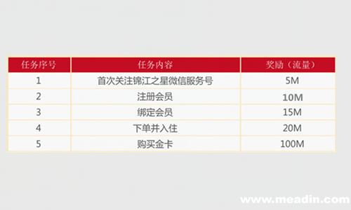 2015年12月12日至2016年2月29日,通过锦江之星微信服务号(jjinns2013)完成指定任务即获得固定流量券,每满30M、50M、100M可兑换流量充值至指定手机号码。流量有限,送完即止哦!