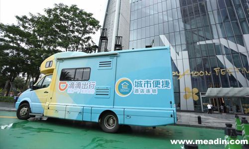 把客房搬上房车其实是来自于东呈酒店集团旗下的城市便捷酒店携手滴滴出行APP,在广州、深圳两大城市推出的关爱上班族出行的活动——“城市卧行,滴滴一下”。广、深两地的白领只要在活动期间通过滴滴出行软件打车,就有机会免费叫到以城市便捷酒店客房为蓝本改造的房车——“卧行专号”。坐上这辆“卧行专号”,早起的上班族可以吃营养早餐,睡个回笼觉;中午的乘客可以在车上午睡,并有咖啡提神;工作到深夜的加班族,不用再硬撑到家里,回家路上就可以小睡片刻,还有特供宵夜。为了加强活动的娱乐性,城市便捷还特别邀请了演员在车上扮演漫威电影角色,与乘客互动。