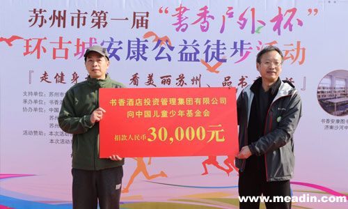 特别值得一提的是,本次活动有别于一般的徒步活动,主办方会将所有报名费用全部捐赠给中国儿童少年基金会,用于“安康图书馆”的建设。据悉,书香酒店集团于2011年6月与中国儿童少年基金会签订协议,联手推出“书香安康”图书馆计划项目。旗下拥有书香府邸酒店(精品)、书香世家酒店(主题)、书香门第酒店(智慧)。目前,书香酒店已经成功捐建了徐州新城实验学校、济南沙河中学安康图书馆以及苏州西山堂里小学等三座图书馆。
