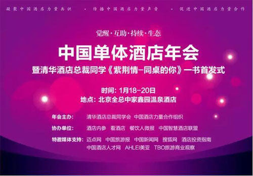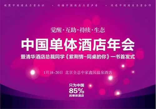 6、参加中国单体酒店年会,直击痛点找到出路!本届中国单体酒店年会于2016年1月18-20日,在北京全总中家鑫园温泉酒店举办(报名参与热线:魏紫13611226760),正是为了解决我们单体酒店自身的出路问题,特盛邀到战略专家清华大学金占明教授,和国内酒店业知名专家,还特别邀请了堪称当今中国酒店力量60家60人(近3年内酒店运营突出,逆势上扬),5家酒店云PMS供应商,连锁酒店CEO等与会演讲,共话单体酒店2016年。我们需要深度的觉醒与互助,持续创新,找出一条明朗的路。