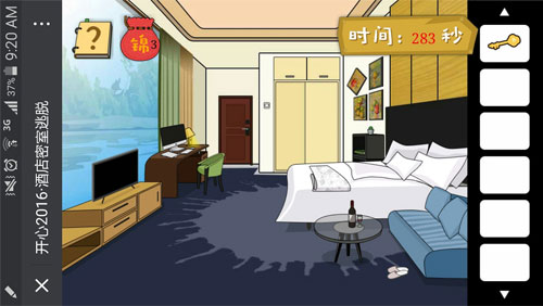 华侨城酒店推出“密室逃脱”游戏,用户需点击屏幕整理床铺沙发或关掉台灯,方可获得关于逃脱密室的重要线索,在规定时间内完成任务。