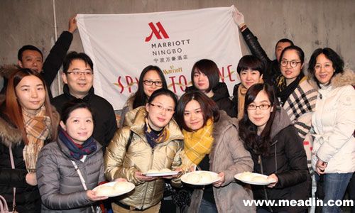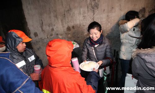 宁波万豪酒店携手阿育王寺,为城市美容师——环卫工人送上一份实实在在、发自心底的节日礼物和祝福——热气腾腾的腊八粥和早餐包。
