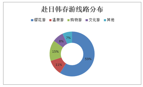 相比其他目的地自助游客人增多,跟团游仍是赴日旅游首选方式。同程旅游工作人员也表示,自2016年开展“日本旅游月”以来,高质量亲民价格的线路产品受到不少游客的青睐。进入三月,赴日韩春游线路类型也更为丰富。同程旅游预订数据显示,已售产品中赏樱成为最大卖点,近59%的出游线路主打赏樱,并得到消费者的追捧。选择春游之中顺便剁手,“买买买”的游客占据了近15%。而选择错峰,在春寒料峭中享受温泉,性价比较隆冬更高,相关线路占据了11%。文化探访则以较为稳定8%得到不少资深动漫文化控爱好者的青睐。随着天气回暖,各地迎来了春游客流大潮。同程旅游近日发布今春首个出游趋势预测,自驾游成为春游最受欢迎的方式,家庭亲子占出游人群的70%,主题乐园、古镇、赏花线路成为最火爆的三大类。相比往年,今春更多家庭选择赴日韩等周边国家春游赏樱,出行游客数同比去年增长了近300%。