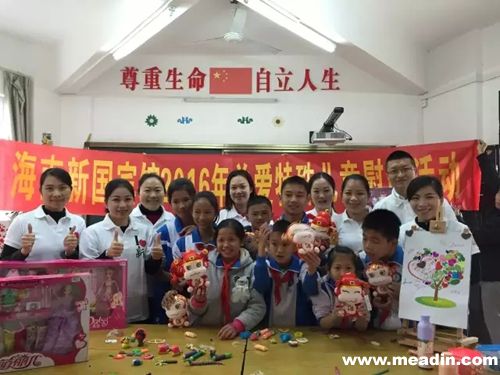 在新年开学之际,海南新国宾馆酒店领导及员工代表来到海南(海口)特殊教育学校,看望和慰问学校的孩子们,送上了慰问物品和酒店西餐厅精心出品的爱心蛋糕,并与孩子们进行互动捏橡皮泥、画爱心树游戏,将关怀与祝福带给孩子们。海南(海口)特殊教育学校是海口市目前唯一的一所以培养听障、视障、智障学生为主的国有公办特殊教育学校,酒店希望能够号召更多的爱心人士了解并关注这些弱势群体,帮助他们幸福快乐地成长,充满正能量地面对未来的生活。