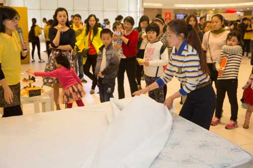 在世界睡眠日到来之际,7天酒店首次在广州、深圳两地举办“睡眠周”,以“睡眠”主题开展了形式多样的玩法,利用时下年轻人最流行的晒图、H5游戏等互动方式,在微信、微博等新媒体吸引年轻人的参与,特别是在线下进行的主题路演,用鲜明趣味的展示表现7天“睡好觉”的品牌形象,而邀请网友进行入住体验的活动,也是7天直接聆听年轻睡客心声的一次创举。