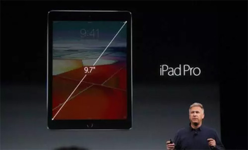 最后是9.7英寸的iPad Pro。大概这样:我们知道大家还是喜欢小点的哦,就做了这个尺寸哦,大家来买哦。