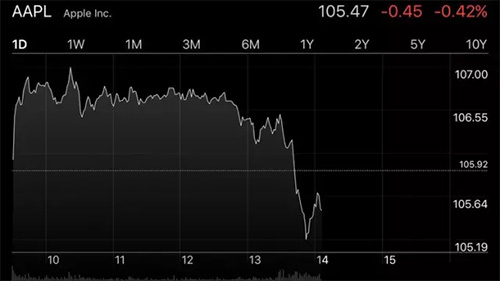 如果说诺基亚是“科技以换壳为本” ,那苹果这次可以算是“科技以换表带、换型号、换尺寸为本”了 。发布会结束后,就有人贴出了苹果公司的股票走势图: