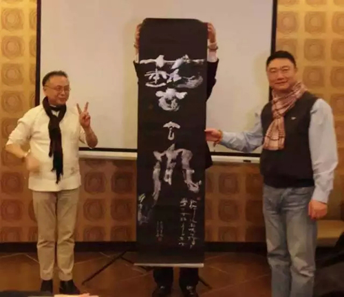活动现场春野先生向锦江都城酒店品牌“艺空间”赠字一幅。