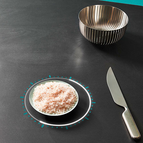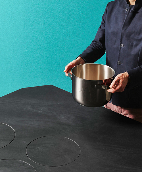 嵌入台面的压力传感器则可以扮演厨房称重秤的角色,称重时压力传感器显示在台面上的蓝色光圈会变为红色,重量精确到克。