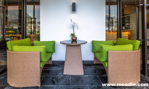无论是差旅还是旅行游玩,诗莉莉·阳朔漓筑蜜月精品酒店致力于打造集工作、放松、进餐、娱乐于一体的灵活公共空间。酒店临水而筑,脚下便是潺潺的漓江水,无论是大露台的休闲区,还是客房的大厅,均为竹制藤椅,加之嫩绿色的坐垫,与对岸的水墨山峰相互交映,呈现一片勃勃生机