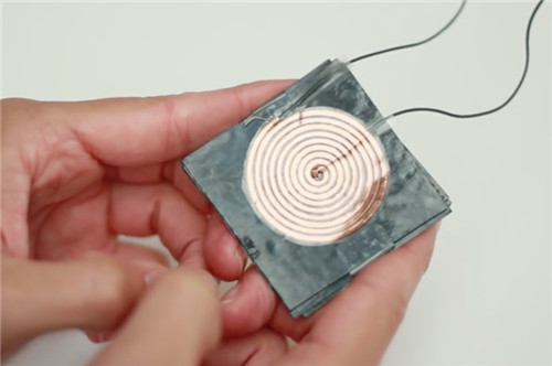为了确保在充电时不会对人体皮肤造成伤害,在开发 PowerShake 方案时,该团队设计了一种由铁酸盐和铜做成的屏蔽罩(如上图),放在充电线圈和人体皮肤之间。该团队还对 Qi 标准的结构上进行了一定的修改,可以让两台设备间在发生小范围移动时不影响充电。