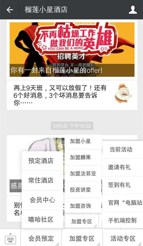 2.智能定义酒店服务:预定、入住、续住、退房、开门、会员积分兑换,微信一键搞定。