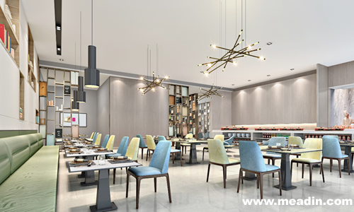 在中产阶级崛起和消费升级的大浪潮下,酒店不再只是人们住宿的地方,更是彰显审美和价值观的生活方式场所。从宜尚的门头、大堂、到餐厅、清吧等公共空间,无论是视觉、听觉和嗅觉,充满设计巧思的元素无处不在:宜尚独特时尚的LOGO和门头,以醒目靓丽的玫红色闪烁在城市夜空,仿佛港湾的灯塔一般指引身处异乡的旅客;前台背景墙凸显后工业时代的设计风格,黑色的几何框架与明黄的灯泡相互点缀,招牌式的两个黑色手电筒悬挂于前台上方,立刻凸显简洁干练的时尚商务风格;此外,宜尚大堂还配有专属开发的“轻蓝”国际香薰,中性气味天然纯净,让人倍感舒适宜人,再配上摩登时尚的宜尚背景音乐,让你踏入酒店便即刻进入一个有态度的时尚空间。