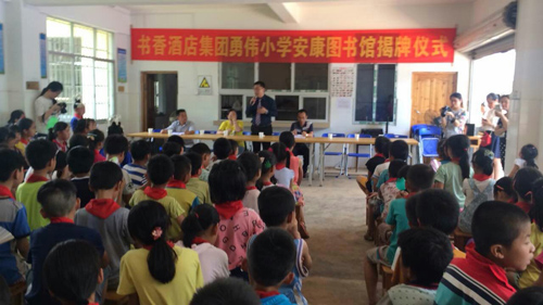 书香酒店集团在潜心发展的同时,一直把企业的社会责任感放在重要地位,与中国儿童少年基金会联手,为留守儿童捐建安康图书馆,是书香酒店集团近年来一直在做的一项公益项目。书香酒店集团总经理朱巍表示,多年来,书香酒店集团一直高喊着“捐助一元,给孩子一本好书。”的崇高口号,号召自己的员工、酒店的客人以及所有有爱心的人来用自己的实际行动参与到我们的安康公益计划中来。这项公益计划不但赢得了社会的广泛赞誉,更营造了良好的企业形象。在“六?一”国际儿童节这一天,书香酒店集团为广西大山里的孩子送一座图书馆,不仅是书香人的一项善举,更代表着一份美好心愿:希望所有的孩子,都有一个不缺书籍的美好童年!