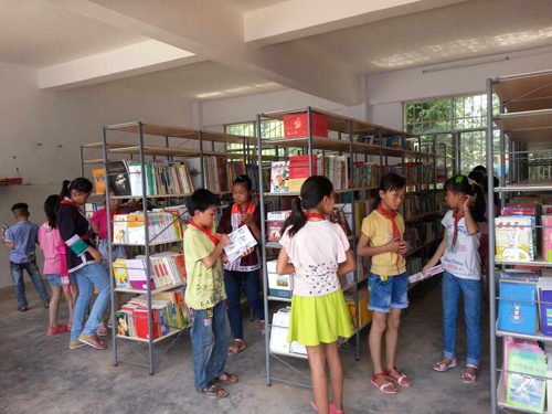 几天后,书香酒店集团成立了专门的图书馆援建项目组。从项目成立到选址考察,前前后后用了两个多月的时间,斥资十万元,终于在今年的6月1日国际儿童节这一天,为柳州市洋溪乡勇伟小学的一百多名孩子送去了一座崭新的图书馆。面对崭新的一万册图书,孩子们开心不已,他们纷纷挑选自己喜欢的书籍,如饥似渴地阅读起来。对从未走出过大山的孩子们来说,没有什么礼物,比眼前的书籍更好的了。