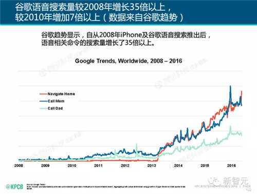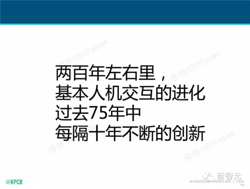 周三,美国最大风投基金凯鹏华盈(KPCB)合伙人、有“互联网女皇”美誉的玛丽·米克(Mary Meeker)在美国Code大会上发布了她的第21次《互联网趋势》(Internet Trends)报告。其中她分析了全球互联网增速放缓的趋势,指出了互联网在广告、电子商务、社交通讯等领域的未来增长点,以及智能语音识别和智能汽车技术带来的新型人机交互方式。本文摘录了报告中“重塑人机界面”部分,看人工智能的发展会如何影响互联网。